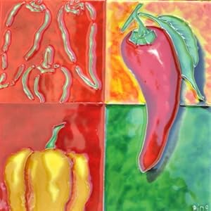 More about → Best 8" x 8" High Gloss Raised Image Unique Handcrafted Decorative Ceramic Artist TileWall Plaque With Hanger / Stand - Vegetables Themed Peppers & Chiles (BD-0429) Price