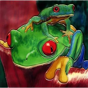 More about → Best 8" x 8" High Gloss Raised Image Unique Handcrafted Decorative Ceramic Artist Tile Wall Plaque With Hanger / Stand - Mom Or Dad & Baby Tree Frogs (BD-2026F) Review